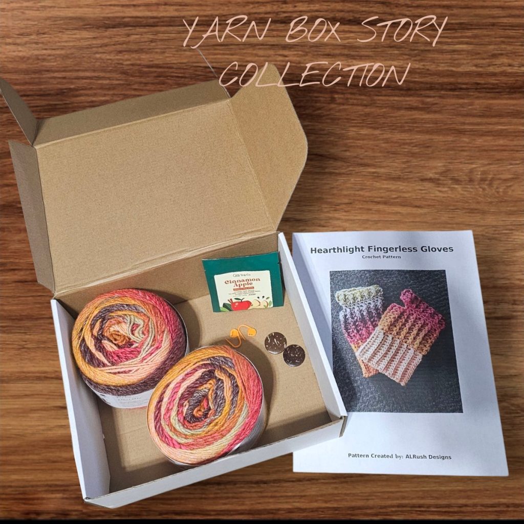 Each Yarn Story Box includes hand-picked yarn, an exclusive ALRush Designs pattern, and a cozy themed story to inspire your next project.